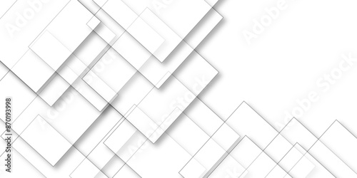 White geometric overlapping square pattern. Vector illustration technology background with shadow. Modern minimal and clean white background with realistic line. light silver background modern design.