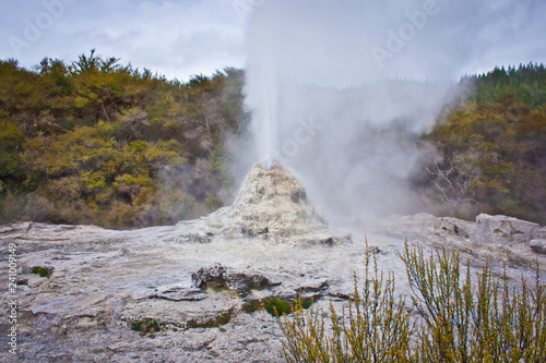 White geyser in geothermal park in New Zealand