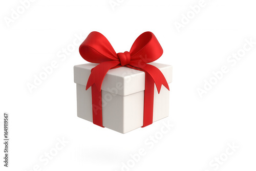 White gift box adorned with red ribbon, 3d rendered against transparent backdrop, highlighting festive packaging design