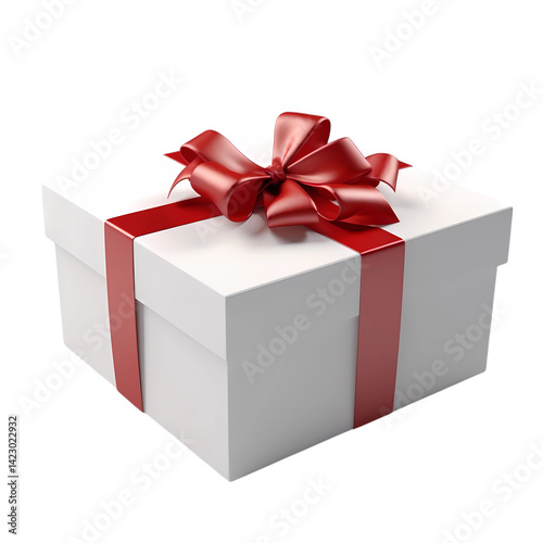 white gift box with a shiny red ribbon and bow. Simple and elegant present