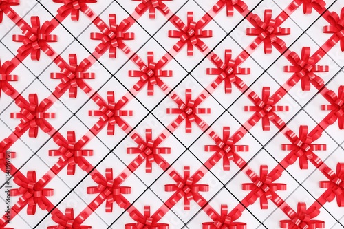 White Gift box with Red ribbon on top view. 3D Render. Christmas idea concept.