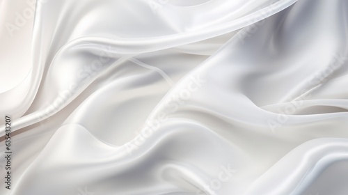 White glossy fluid fabrics abstract silk folds background. AI generative.