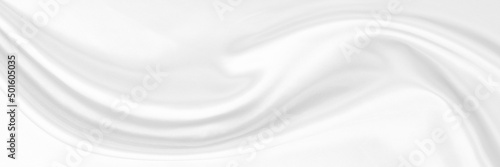 White gray satin texture that is white silver fabric silk panorama background with beautiful soft blur pattern natural.