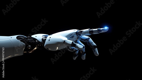 White half-shell mechanical hand with metal texture, Generative AI