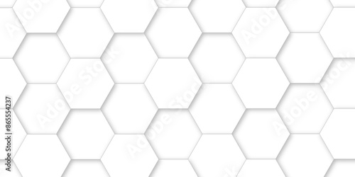 White hexagon tiles abstract background vector digital art 3d shadown geometric shapes