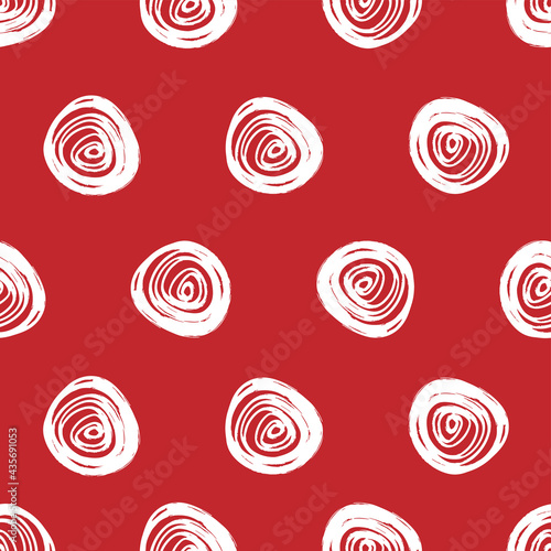 White ink spiral circles isolated on red background. Cute geometric seamless pattern. Vector simple flat graphic hand drawn illustration. Texture.