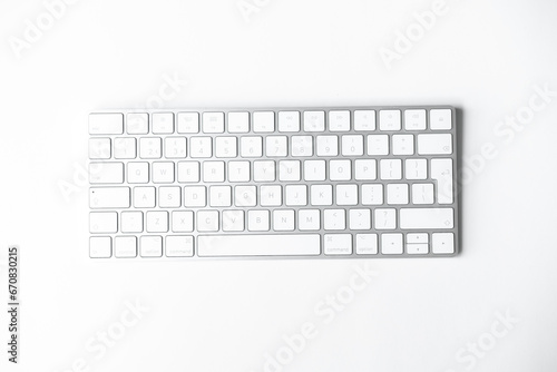 White keyboard on white background , Online learning design concept. Top view of ,Top view with copy space for text