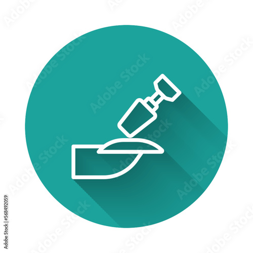 White line Milling cutter for manicure icon isolated with long shadow background. Apparatus for manicure. Manicure tools. Green circle button. Vector