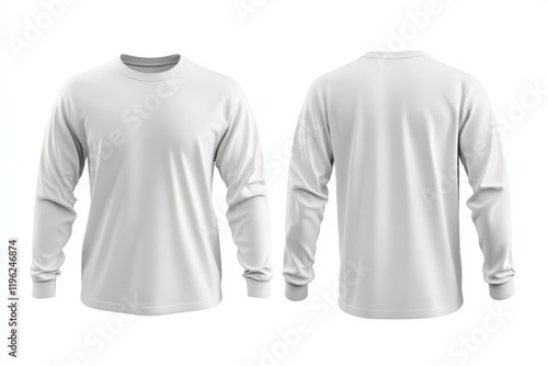 White long sleeve t-shirt mockup, front and back views, isolated on white.