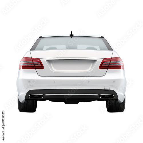 White luxury sedan rear view with black background automobile, Isolated On White, Png Transparent, Cut Out