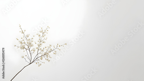 White Mimosa branch gracefully reaching towards a minimalist background.