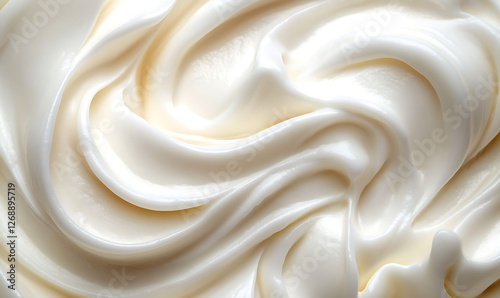 White natural creamy vanilla yogurt. Top view. White texture of whipped cream