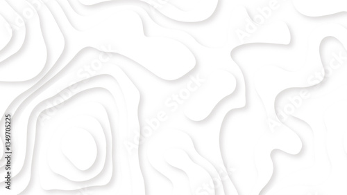 White paper cut decoration textured with wavy layers 3d topography relief background. Abstract white paper cut banner. Geometric layered curve line white background illustration.