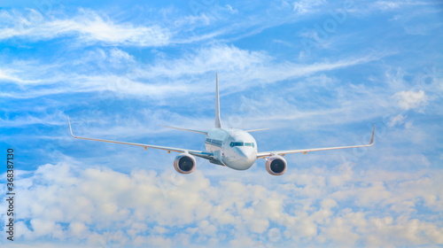 White passenger airplane in the clouds - Travel by air transport