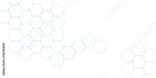 White pattern of hexagons Abstract background with hexagons. Modern simple style hexagonal graphic concept. Futuristic abstract honeycomb technology white background.