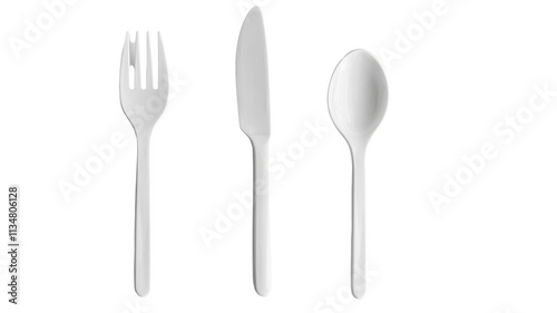 White Plastic Fork, Knife, and Spoon Isolated on PNG Transparent Background