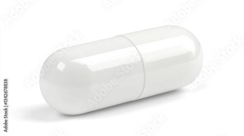 White Plastic Pill Bottle with Screw-on Cap, Ideal for Storing Vitamins, Supplements, or Medications, Isolated on White Background