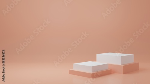 White Product Stand in cream room ,Studio Scene For Product ,minimal design,3D rendering