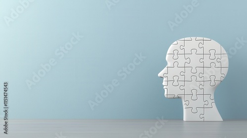 White Puzzle Head Against Light Blue Wall Representing Problem Solving and Creativity