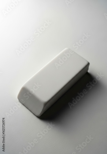 White Rectangular Eraser on White Background - Close-up of a single, clean white rectangular eraser isolated on a white background. Simple, minimalist