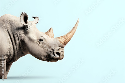 White Rhino Profile, Studio Shot, Blue Background, Conservation, Wildlife.