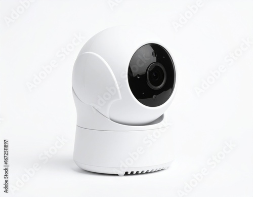 White Security Camera with Black Lens and Sleek Design on Clean Background