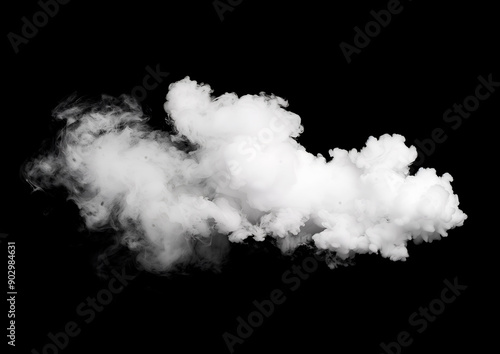 White Smoke Cloud in Motion on Black Background, Isolated on Black Background, Studio Shot