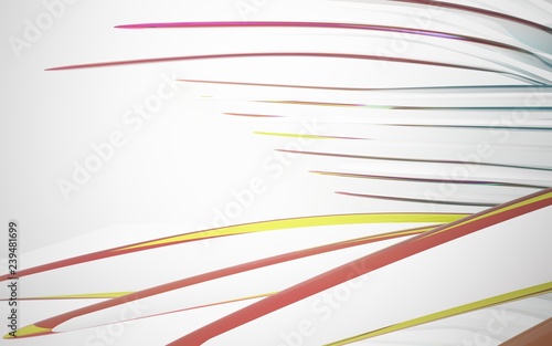 White smooth abstract architectural background whith colored gradient lines . 3D illustration and rendering