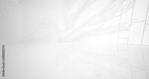 White smooth architectural interior of chaotic lines. 3D illustration and rendering