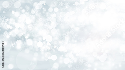 white snow blur abstract background. Bokeh Christmas blurred beautiful shiny Christmas lights. white and gray winter backdrop.