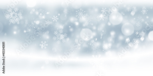 White snowflake blur abstract background. Bokeh Christmas blurred beautiful shiny Christmas lights.