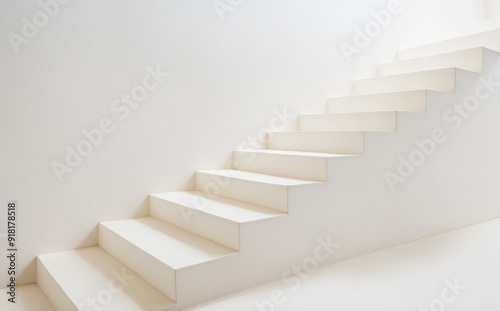 White stairs on white plastered wall. Background. White steps in stilish interior