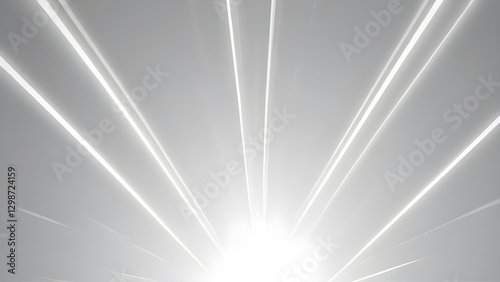 White straight lines converging towards a bright light source at the bottom of a gray background, creating a sense of speed and energy