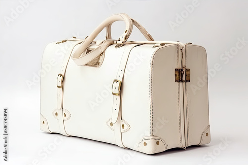 White suitcase, in the white isolated background. Travel, Holiday, Business, Concept. Generated Ai