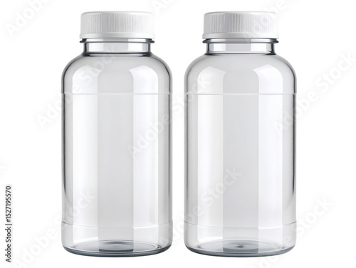 White Supplement Bottle Mockup with Cap, Front View, Transparent