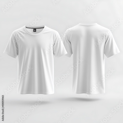 White T shirt Mockup, Front and Back View, Isolated on White Background