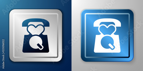 White Telephone with emergency call 911 icon isolated on blue and grey background. Police, ambulance, fire department, call, phone. Silver and blue square button. Vector