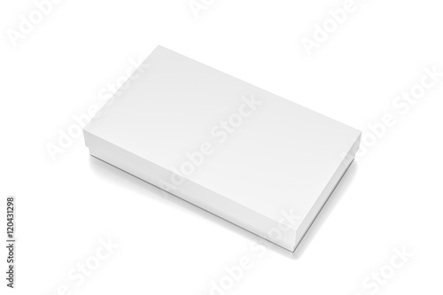 White thin horizontal rectangle blank box with cover from top side closeup angle.