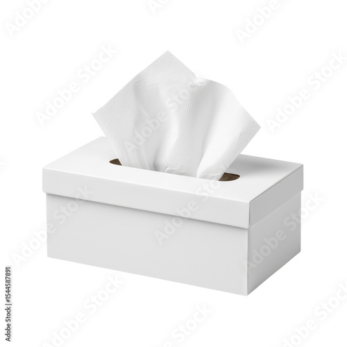 White tissue box with soft facial tissues on white background