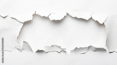 White Torn Paper Background with a Clear Center Space for Text or Images, Ideal for Creative Designs, Minimalist Concepts, and Graphic Layouts in Digital Media