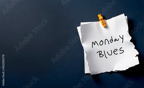 White torn paper on blue background written Monday Blues (Sunday Scaries) - Feeling disappointed as the weekend ends, knowing that the precious relax time has slipped away