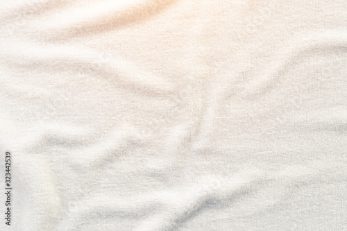White towel texture for background. That fabric or textile consist of cotton fiber material. Look plush, fluffy, dry, soft and clean. For background about baby, spa, hotel, laundry and hygiene etc.