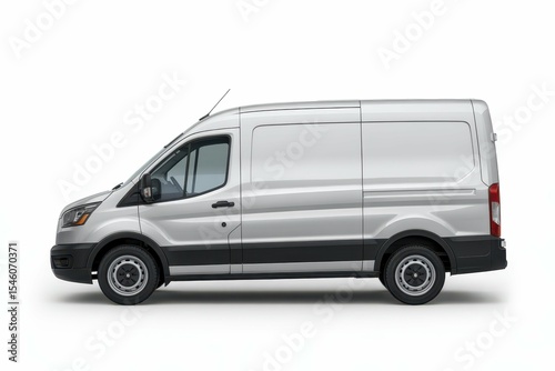 White Transit Van Commercial Delivery Van for Transportation and Cargo Isolated on White Background, with empty blank space for text copy space or mockup design, high detail, 8k