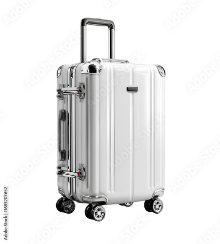 white travel suitcase with wheels, isolated on a transparent background