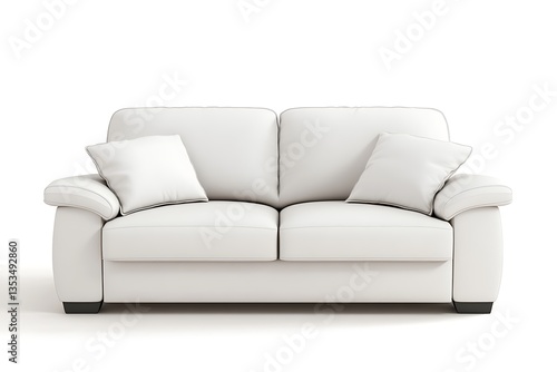 White two-seater sofa with pillows on a white background, minimalist design for home decor