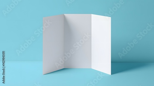 White Unfolded ThreePanel Brochure Stands Against Blue Background Backdrop