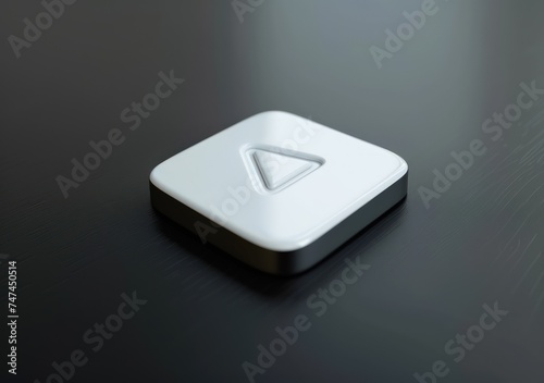 white video player on dark black table, isolated, white background, a 3d rendered rounded square button, playful and bubbly