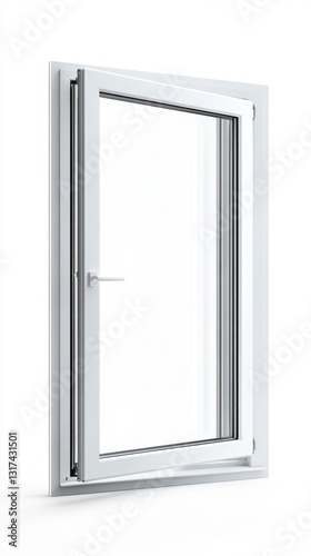 White window frame, modern design, isolated on white background. Clean lines and minimalist aesthetic. Shows detail of window mechanism.