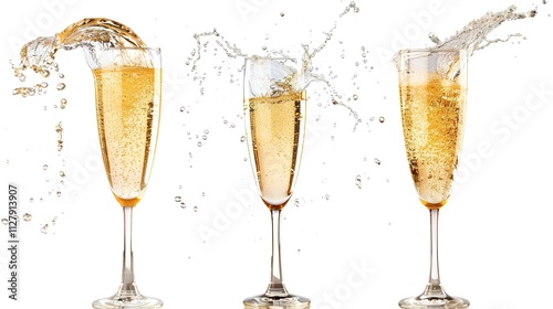 White Wine Champagne Splashing in a Glass on White Background, Sparkling Liquid Display of Elegance and Celebration.