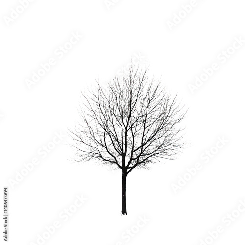 White Winter Tree Isolated on Black Background